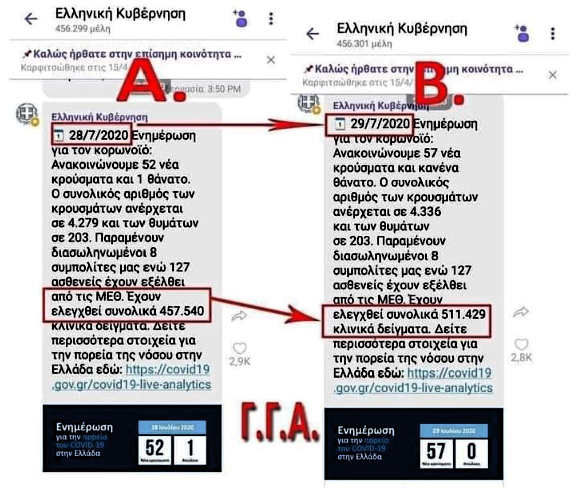 Συγκεκριμένα, την επόμενη ημέρα, Τετάρτη 29 τού μήνα, οι έλεγχοι σε κλινικά δείγματα φτάνουν επισήμως στους 511.429 !!!